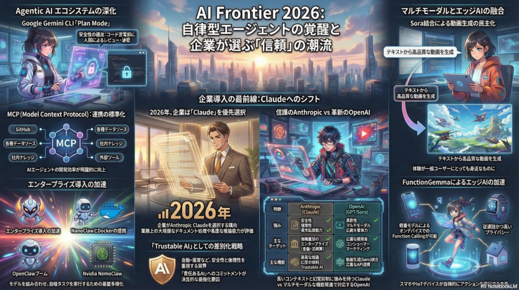 本日はレポートの動向を踏まえ、実務の現場で起きている2つの重要な変化——「Agentic AIのセキュリティ進化」と「エンタープライズ領域におけるClaudeの優先的選択」——について、最新の事実を整理しておく。