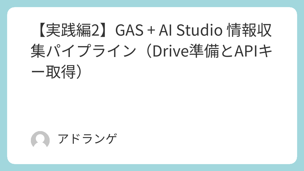今回はコード実装の土台となる「Step 1: 事前準備(Google Drive)」と「Step 2: Google AI StudioでのAPI Key取得」についてまとめる。