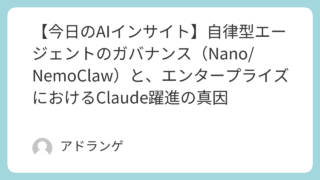 AI Insight 【今日のAIインサイト】自律型エージェントのガバナンス(Nano/NemoClaw)と、エンタープライズにおけるClaude躍進の真因