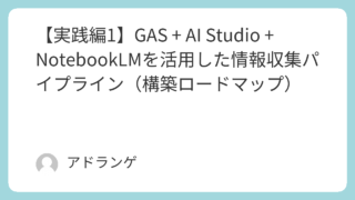 GAS 【実践編1】GAS + AI Studio + NotebookLMを活用した情報収集パイプライン(構築ロードマップ) 2026.03.12 GASGoogel AI StudioNotebookLM