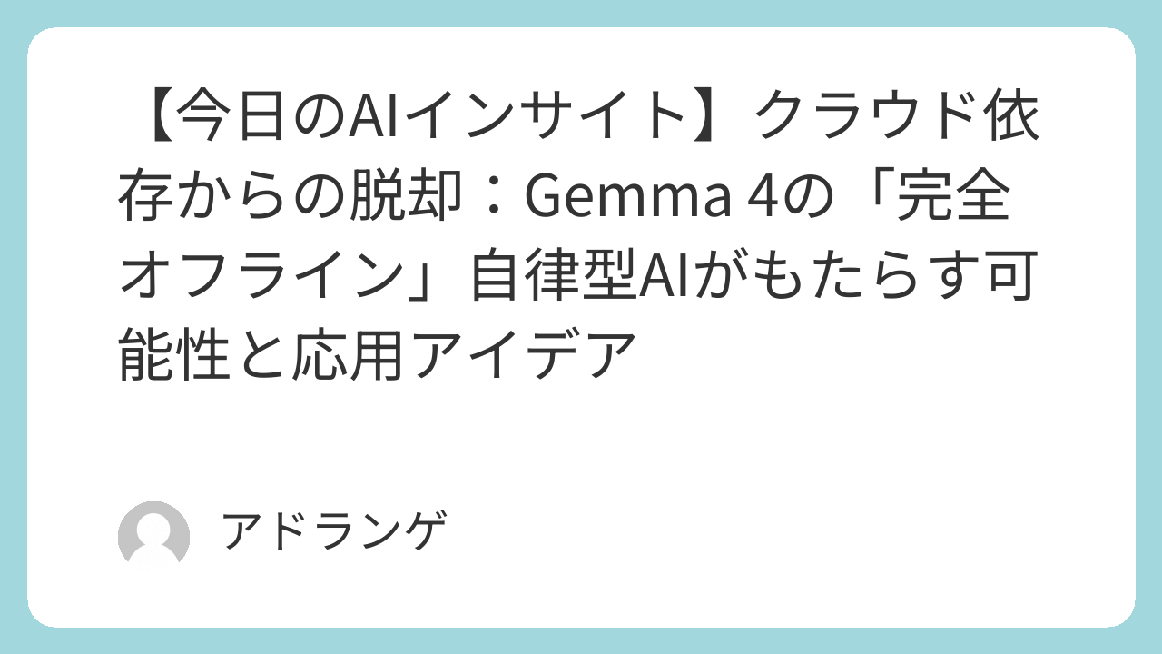 我々はこれまで、「いかに速く、安定してクラウドと繋ぐか」に心血を注いできた。しかしGemma 4が示す機能は、ネットワークが切断された状態でも、システムが自律的に動き続ける未来の可能性を示唆している。